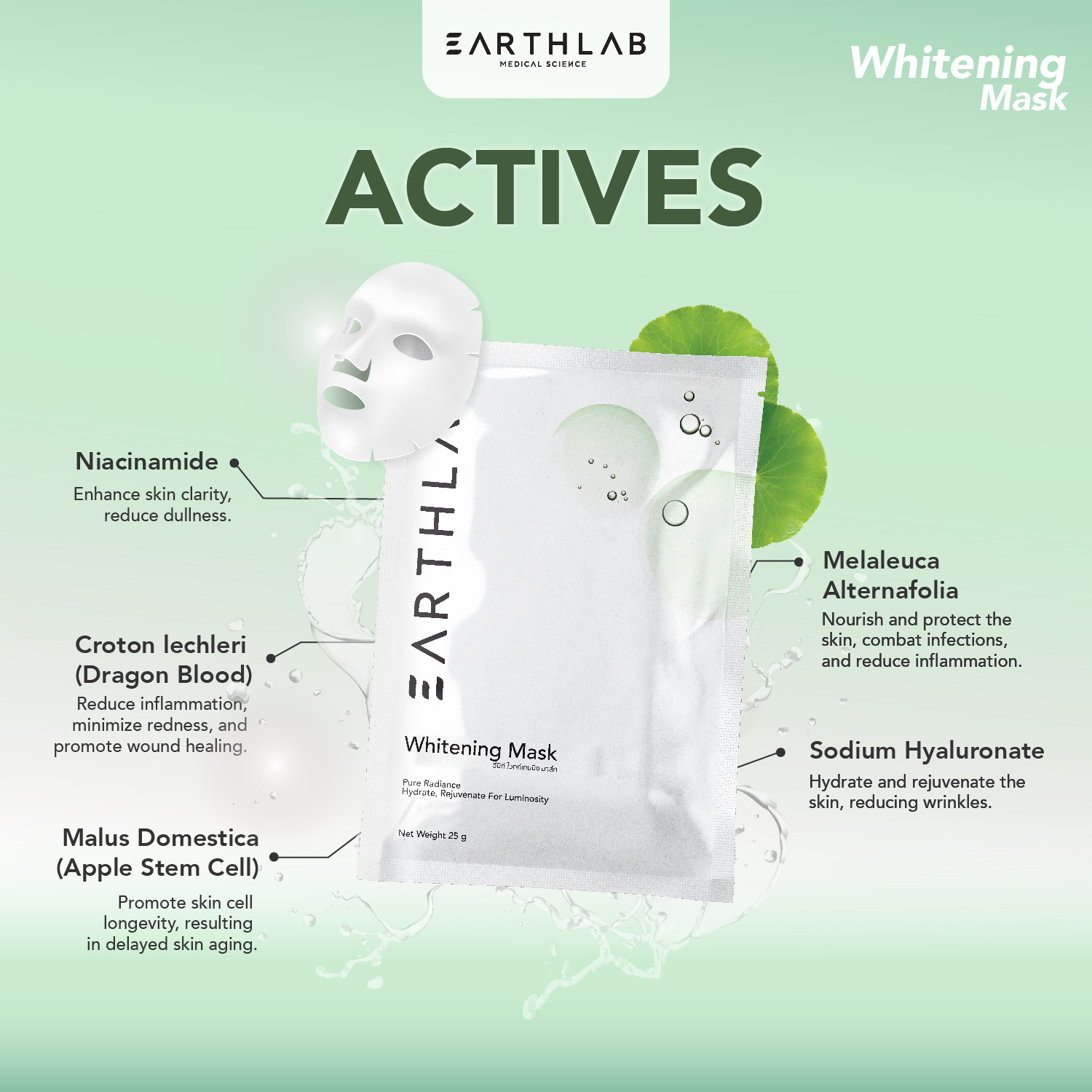 EARTHLAB WHITENING MASK: A facial sheet mask infused with natural ingredients like CBD, Niacinamide, and Dragon Blood. It helps reduce wrinkles, brighten skin, and deeply hydrate for a smoother and more radiant complexion.