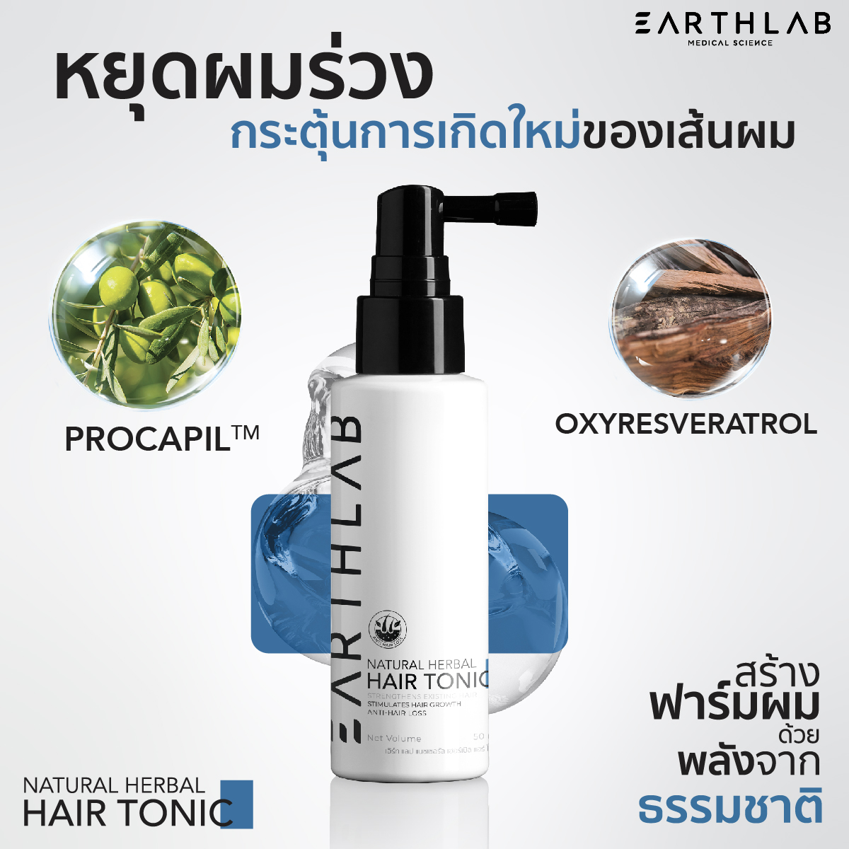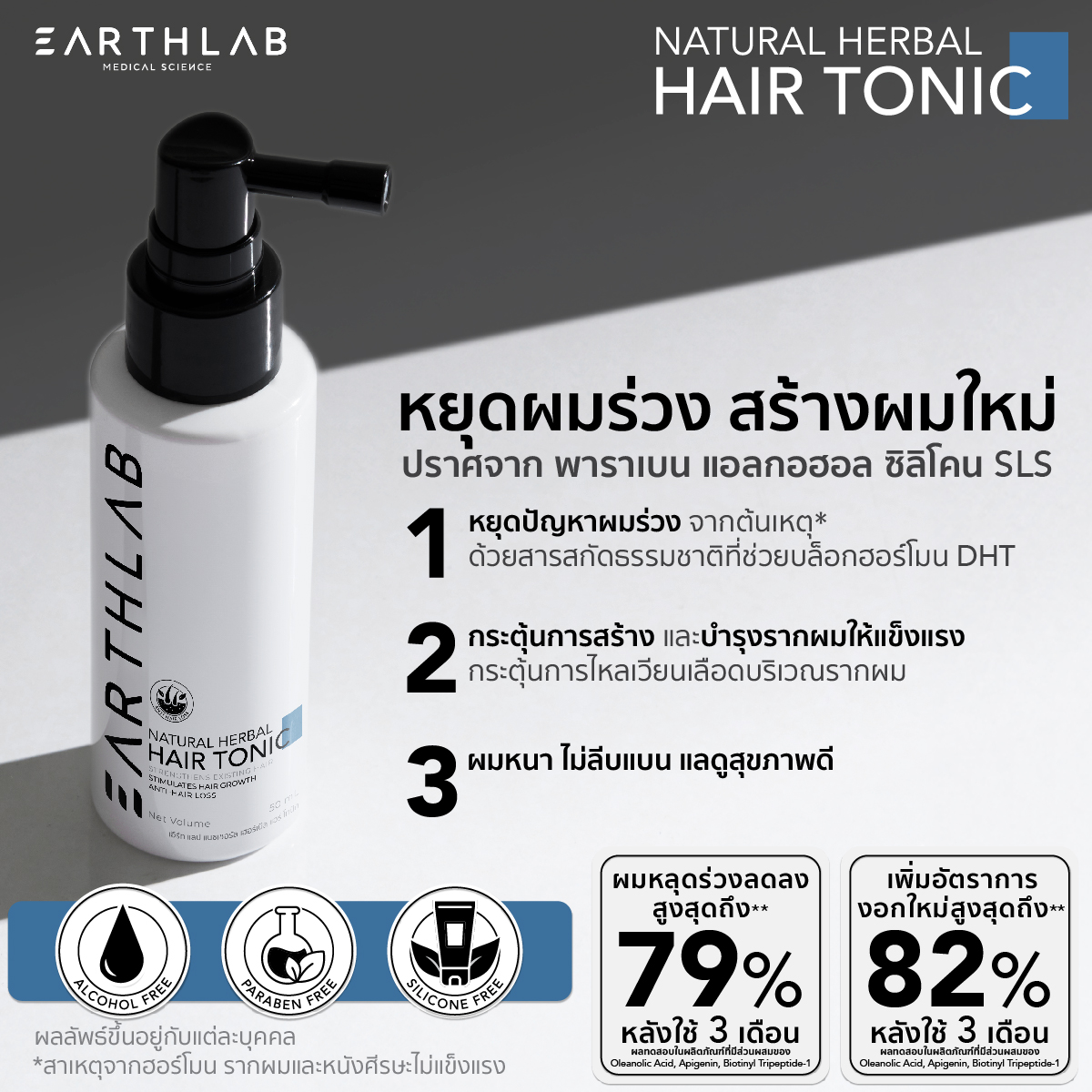 EARTHLAB NATURAL HERBAL HAIR TONIC: A scalp tonic designed to reduce hair loss, stimulate new hair growth, and restore strength to hair roots and the scalp. Infused with natural power from Procapil™, and Oxyresveratrol, this tonic deeply nourishes hair and scalp, promoting thicker, shinier, and healthier hair.