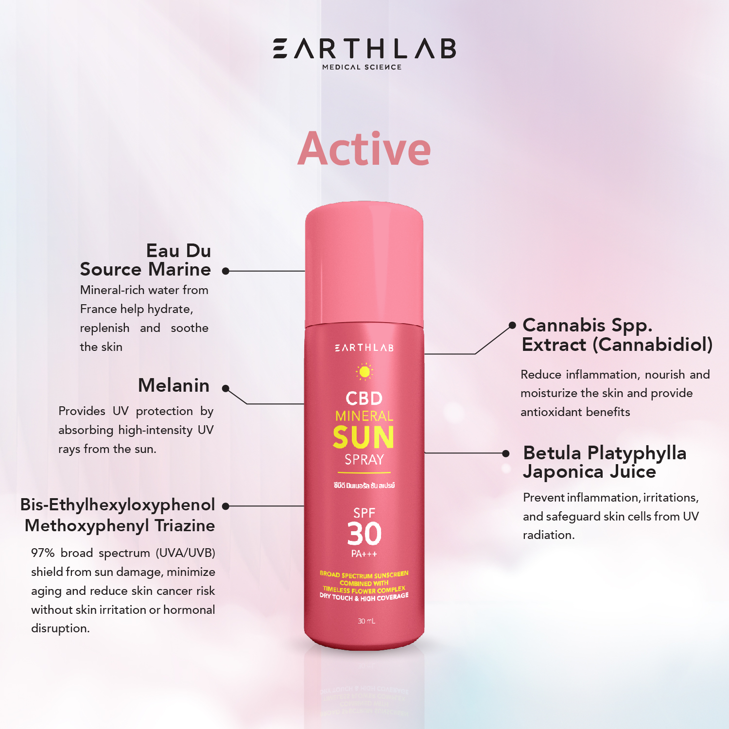 EARTHLAB MINERAL SUN SPRAY SPF 30 PA+++: A lightweight sunscreen spray that protects the skin from UVA and UVB rays. Enriched with natural extracts such as Deep Sea Water, and Melanin. It helps hydrate the skin, reduce inflammation, and strengthen the skin barrier for healthy and resilient skin.