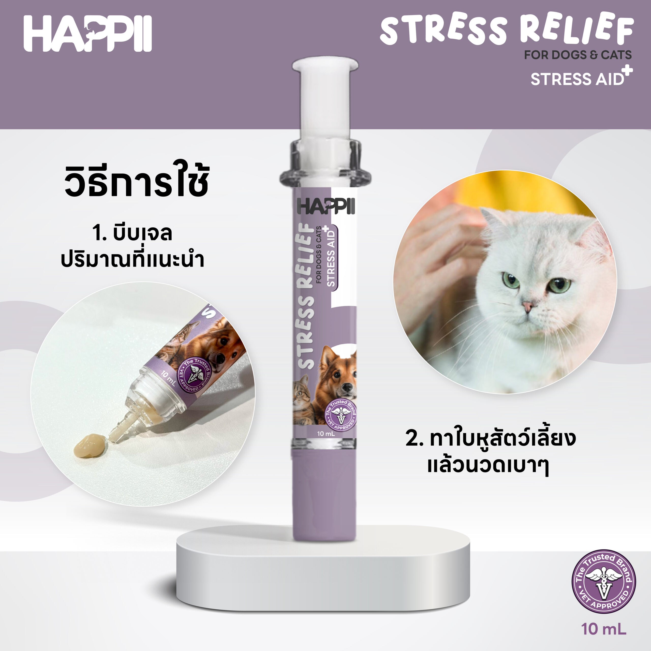HAPPII STRESS RELIEF GEL FOR PETS: A natural 100% stress-relief gel designed for dogs and cats, helping to reduce tension and balance their emotions. Formulated with green tea and rhamnose sugar from France, it is suitable for pets of all breeds, ages, and even senior pets.