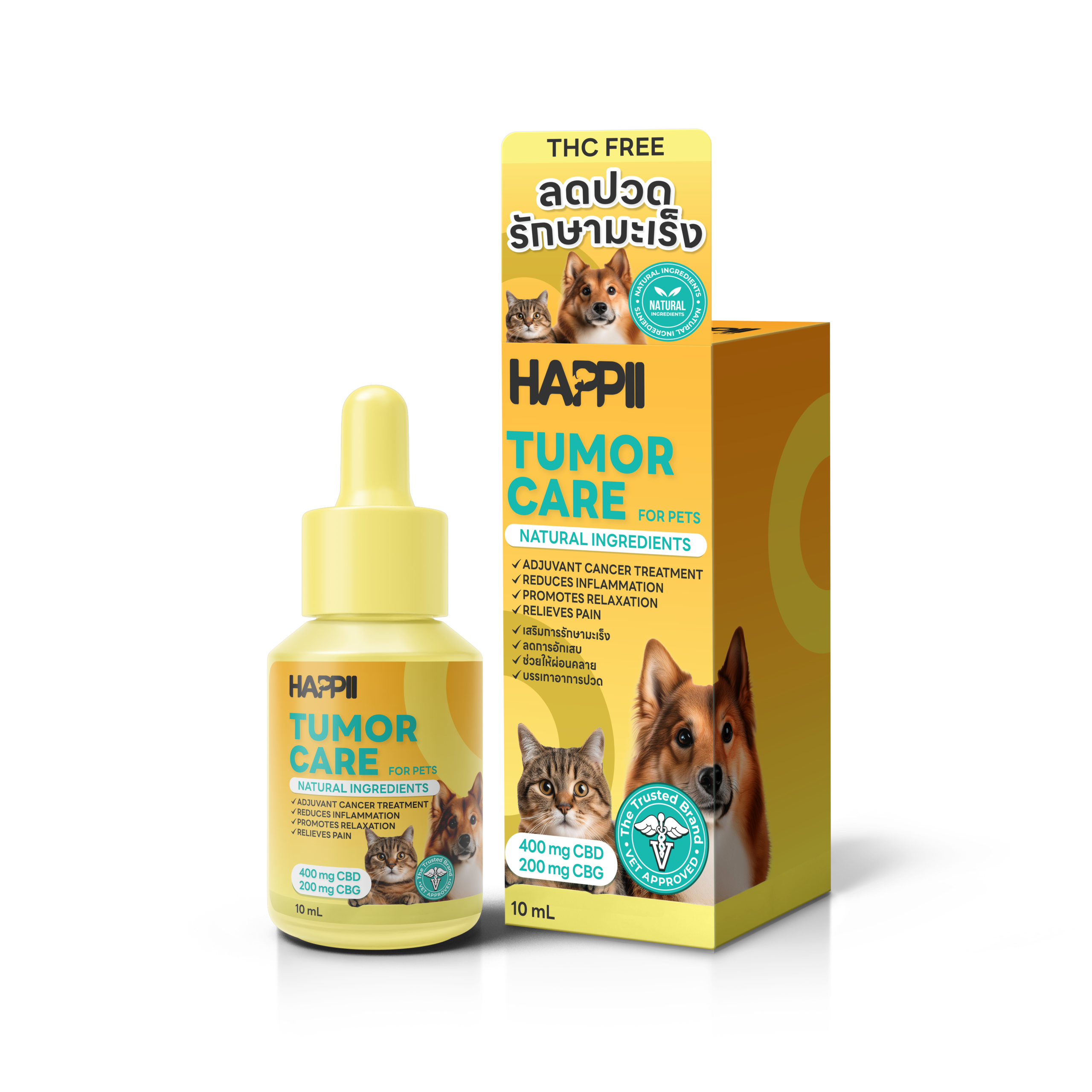 HAPPII TUMOR CARE FOR PETS: Our medical grade CBD and CBG from hemp help improve the quality of life in palliative care pets. Proven to relieve chronic pain and anxiety, improve sleep and aid in stimulating appetite.Ideal for pets with: Chronic pain diseases ,Sleep and stress problems,Undergoing chemotherapy Palliative care. Adjuvant cancer treatment, Reduces inflammation, Promotes relaxation, Relieves pain.Responses to the product may vary among individual animals.Should be used under the guidance and supervision of a veterinarian.